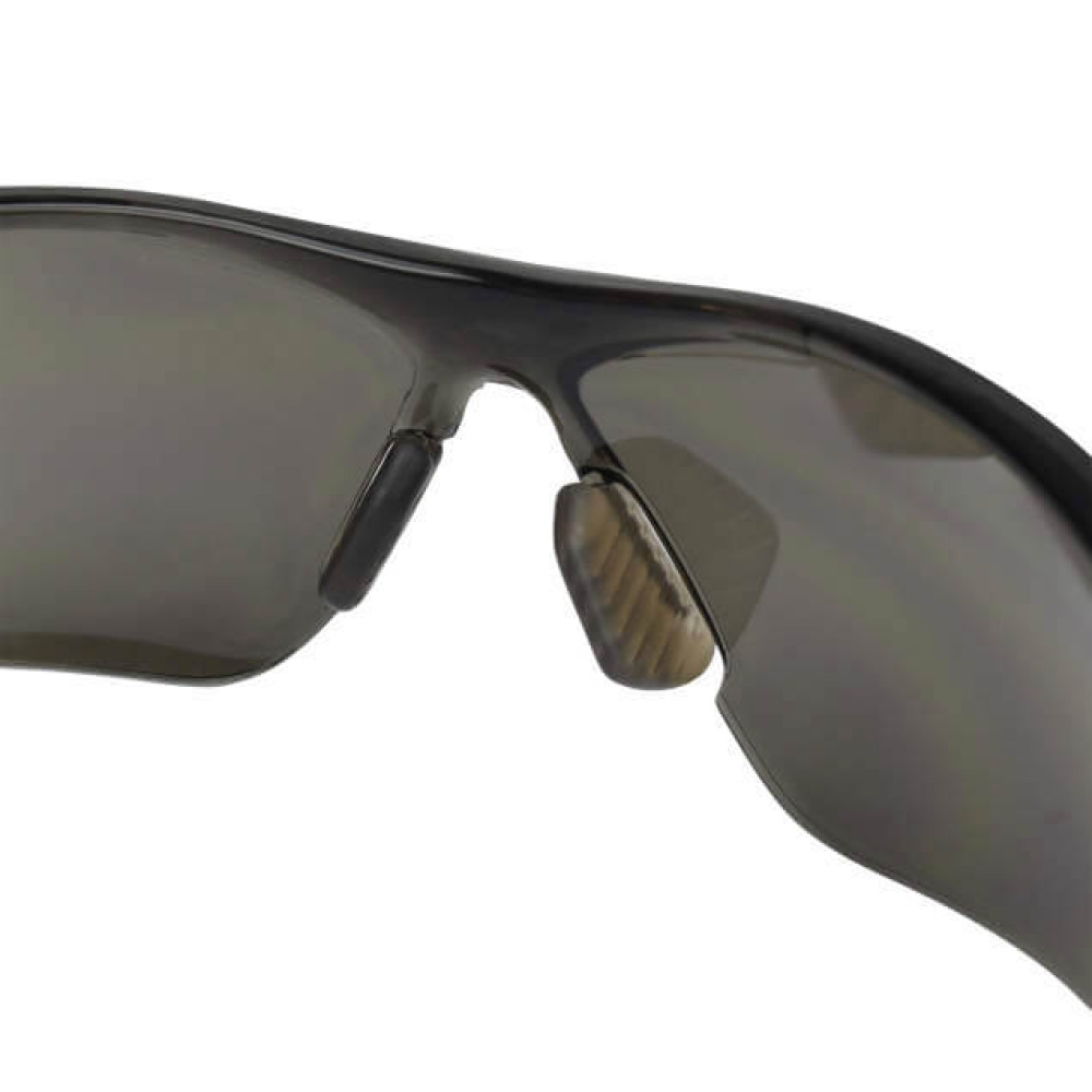 Линзы из поликарбоната, устойчивые к ударам, полностью затемненные, обеспечивают четкое видение без искажений и дополнительную защиту с боков для комфорта при ношении.