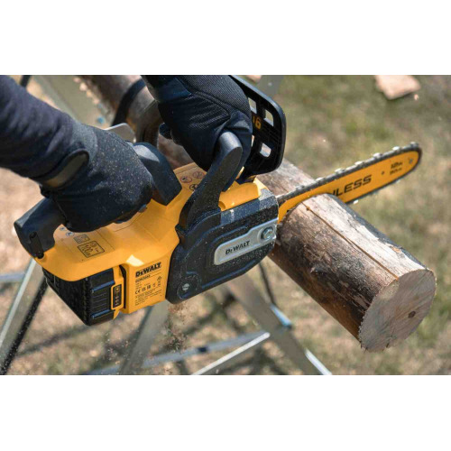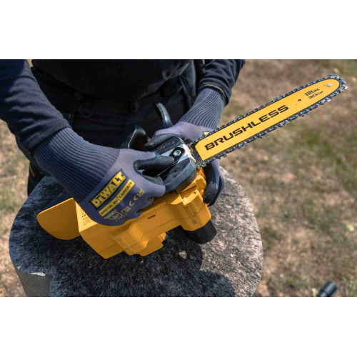 Надежное зажимание шины гаечным ключом. Гаечный ключ удобно хранится в корпусе инструмента для быстрой регулировки в полевых условиях. Компактный дизайн для удобного хранения и транспортировки. Удобно держать в разных положениях, что уменьшает усталость пользователя. Индикатор уровня масла - позволяет легко проверить уровень масла перед началом работы. Быстрое торможение цепи - останавливает цепь менее чем за 1 секунду после активации для безопасной работы. Металлические шипы - сцепляют материал во время резки для лучшего контроля. Ориентировочное время работы - до 100 резов на одном заряде аккумулятора DCB184 (продается отдельно) обработанной сосны, размером 100 х 100 мм.Характеристики