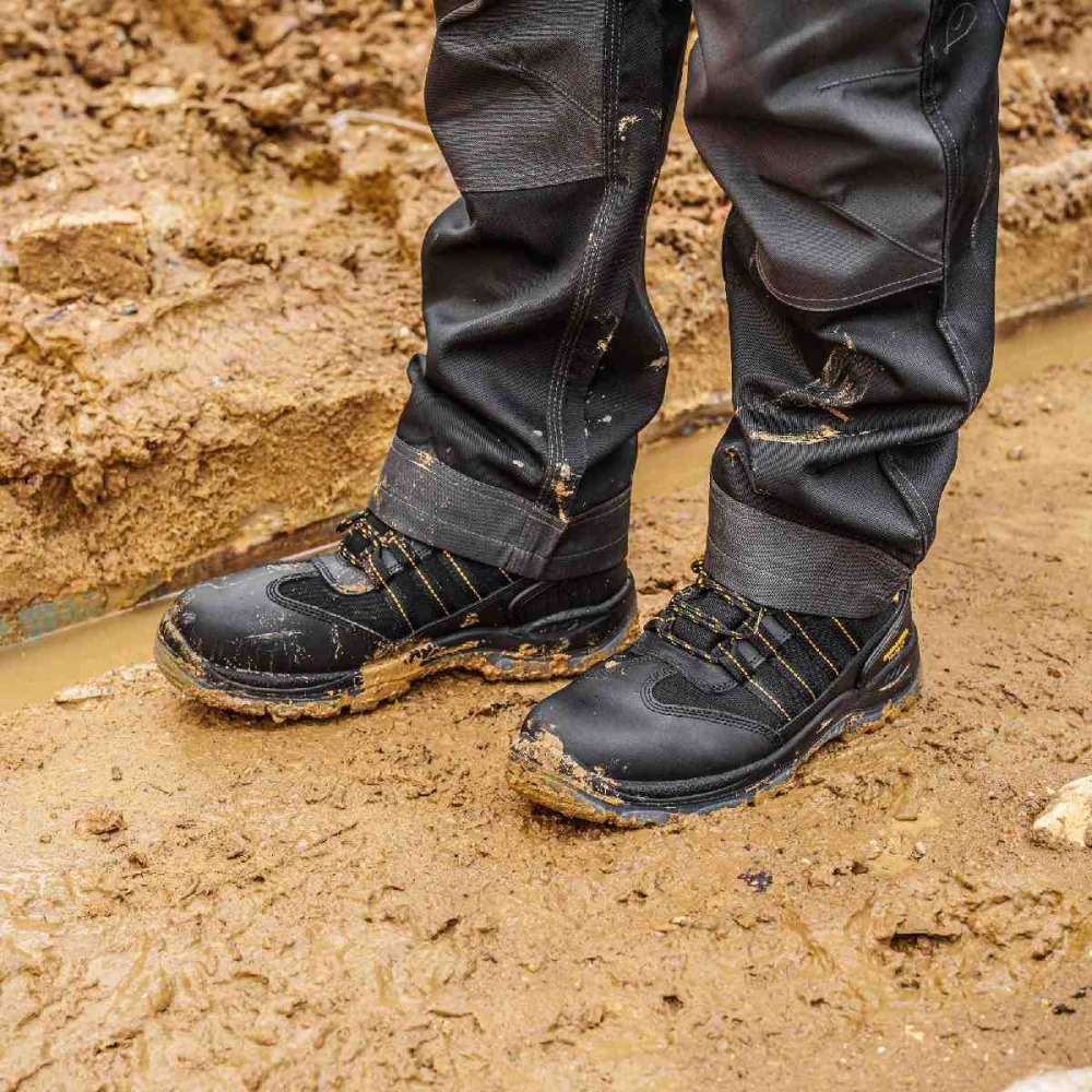 Обувь обеспечивает водонепроницаемость благодаря мембране "Hydroguard" и конструкции "Work Dry Bootie" с водоотталкивающей кожей, что гарантирует защиту от влаги и сохраняет сухость внутри в течение всего дня.